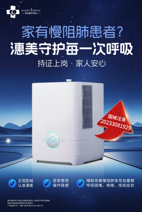 在冬季慢阻肺急性加重高发季节,慢阻肺患者可以通过潓美氢氧气机吸入氢氧混合气体,达到辅助治疗慢性阻塞性肺疾病急性加重期(AECOPD)的效果。