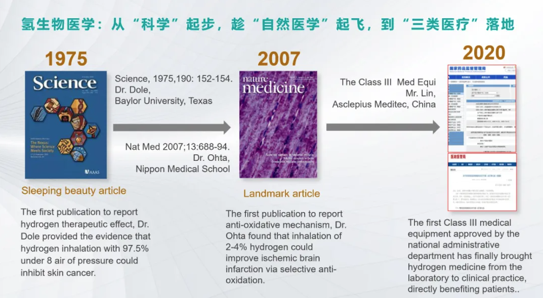 氢氧医学作为一门新兴学科,从基础研究到临床落地,50年来有三个重要的里程碑事件: